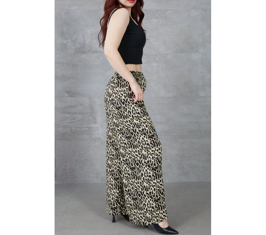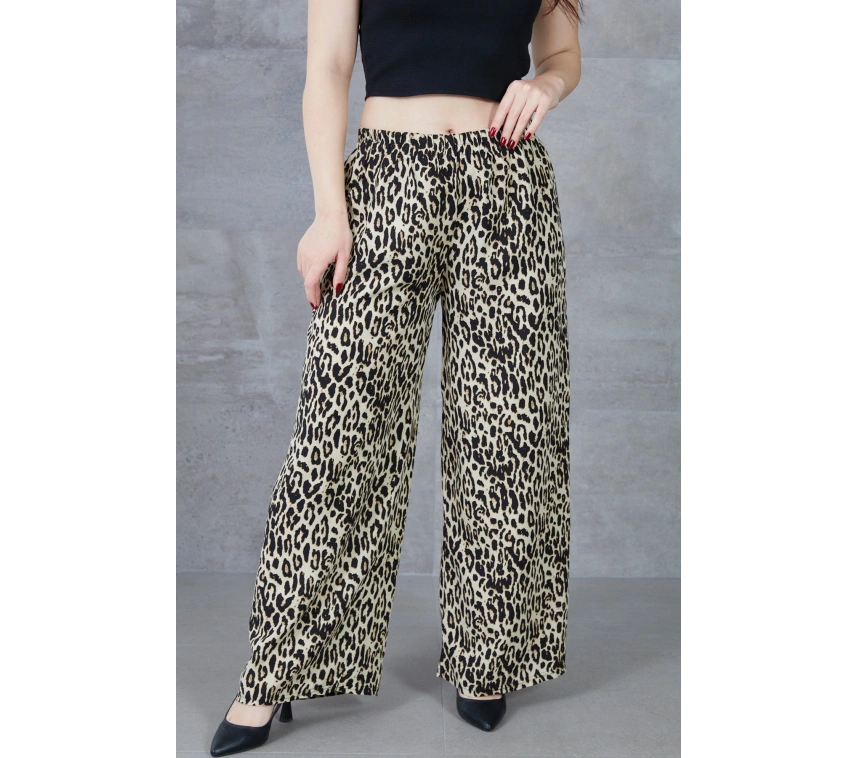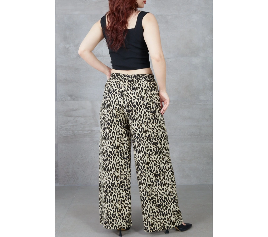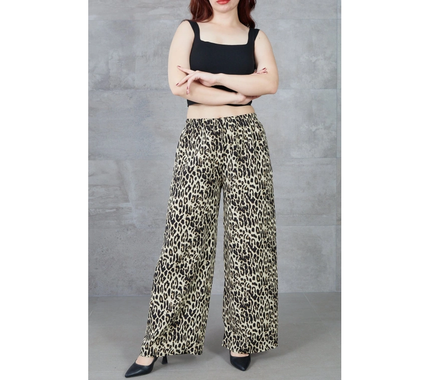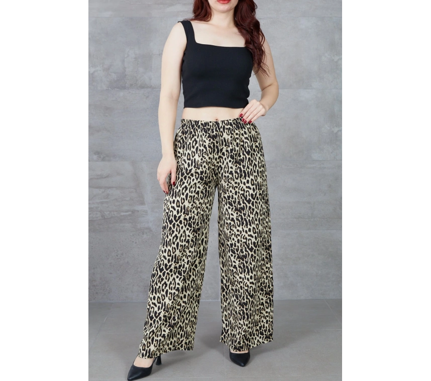 Kadın Leopar Desenli Rahat Kalıp Bol Paça Salaş Pantolon