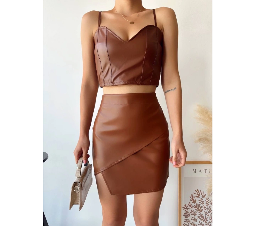 Bu sezonun trend parçalarından olan kapaklı asimetrik model deri eteği, topuklu ayakkabılarınızla şık bir kombin oluşturarak günlük hayatta ya da özel günlerde rahatlıkla tercih edebilirsiniz!
