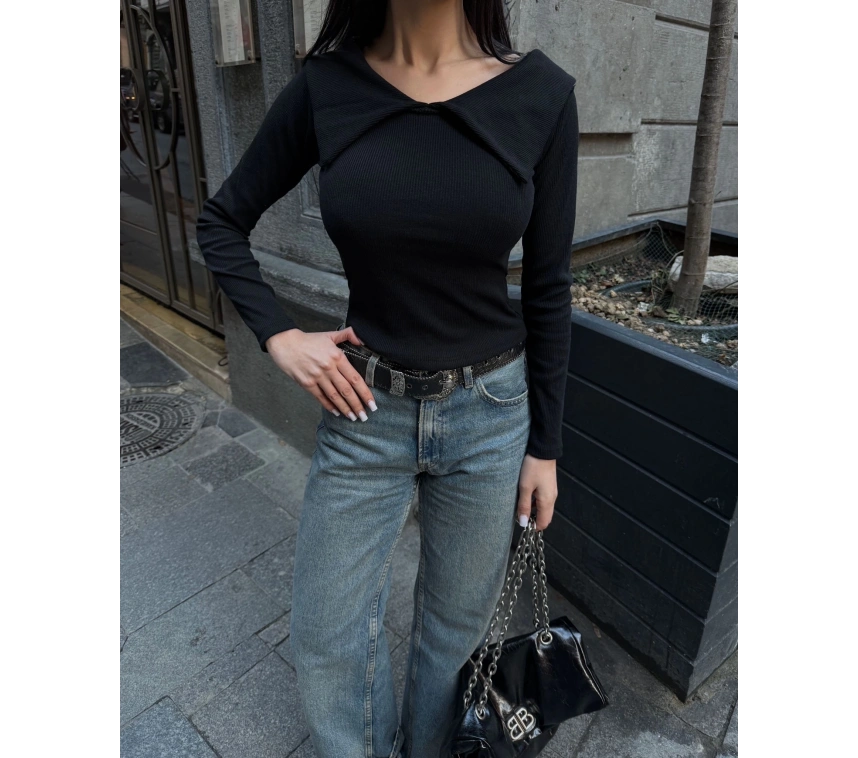 Şıklığı ve rahatlığı bir arada sunan Siyah Kelebek Yaka Uzun Kol Bluz, gardırobunuzun vazgeçilmezi olmaya aday!