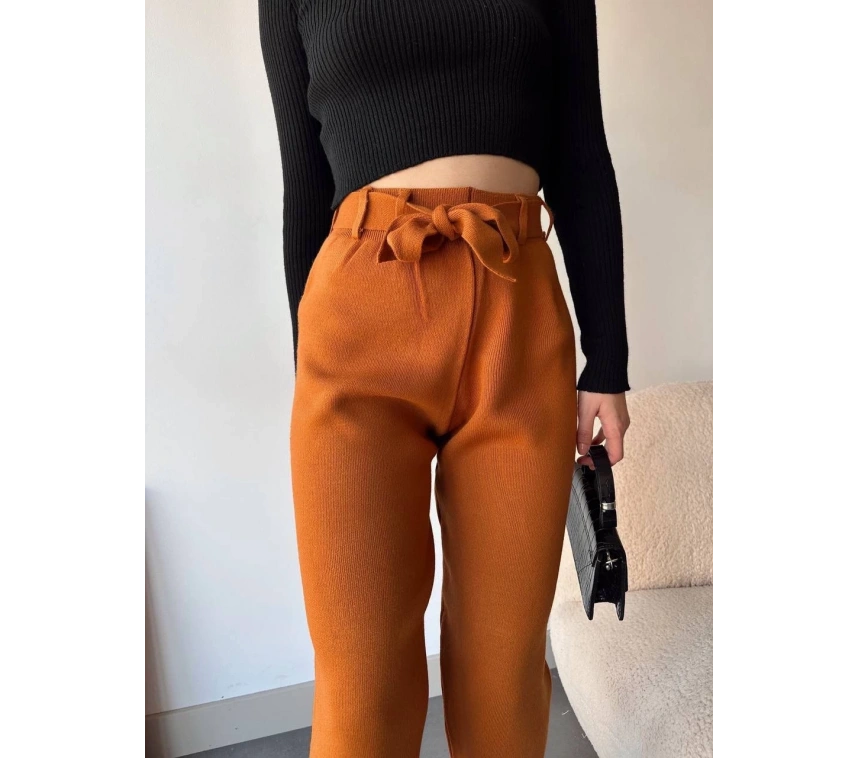 Şıklığı ve rahatlığı bir arada sunan Kendinden Kemerli Triko Pantolon Camel, gardırobunuzun vazgeçilmezi olmaya aday!