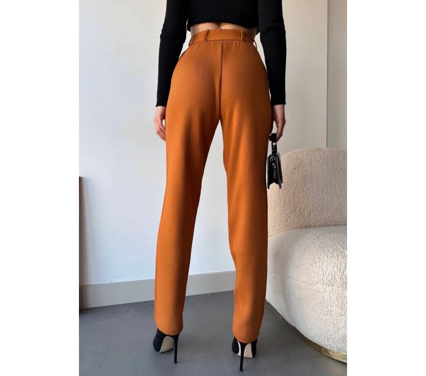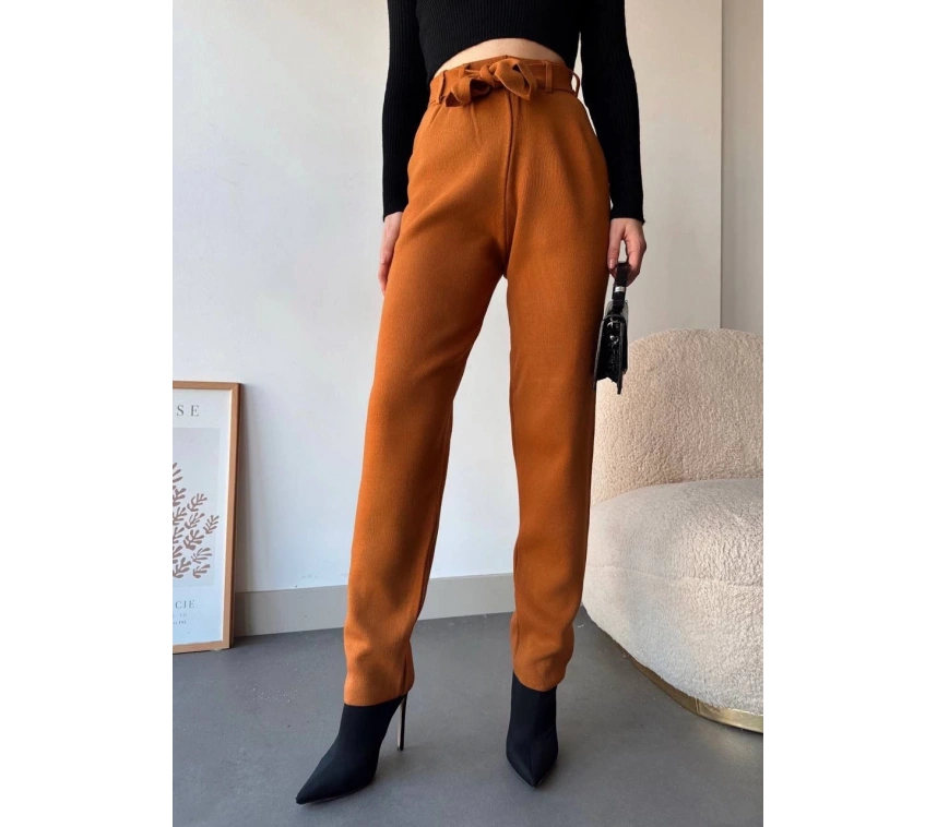 Ofis şıklığında ya da günlük kombinlerde tercih edebileceğiniz Kendinden Kemerli Triko Pantolon Camel, şıklığı ve konforu bir arada arayan kadınların favorisi olacak!