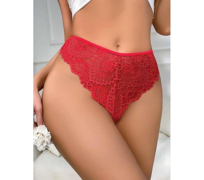 Romantizmi ve çekiciliği bir arada sunan Kırmızı Dantel İşlemeli Arkası Kalp Detaylı Fantezi String Tanga, özel tasarımıyla fark yaratır. Zarif kırmızı dantel işlemeler feminen bir görünüm sağlarken, arka kısmındaki kalp detayı romantik ve playful bir hava katar.
