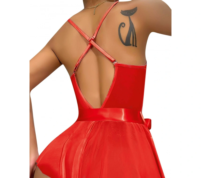 Aşkın ve tutkunun simgesi kırmızı, bu özel tasarımda zarif dantel işlemeler ve romantik bir kurdele dokunuşuyla buluşuyor. Göğüs kısmındaki detaylı işçilik ve hafif transparan tül kumaşı sayesinde hem feminen hem de baştan çıkarıcı bir görünüm sunar. Gecelerine iddialı bir dokunuş katmak isteyenler için vazgeçilmez bir parça.