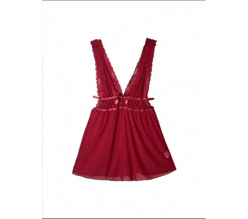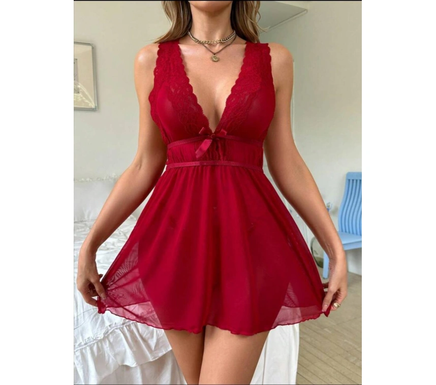 Kırmızı Dantel İşlemeli Tül Fantezi Gecelik, canlı kırmızı rengi ve zarif dantel detaylarıyla özel anlarınıza çekicilik katar. Hafif tül kumaşı vücudu nazikçe sararken, feminen ve baştan çıkarıcı bir siluet oluşturur.