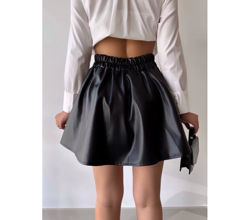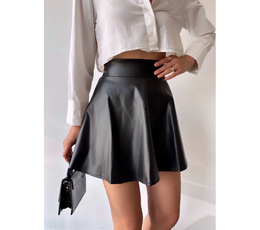 Şık ve modern tasarımıyla dikkat çeken Kısa Deri Çan Etek, gardırobunuzun vazgeçilmezi olmaya aday!