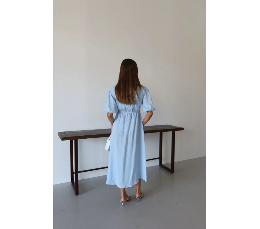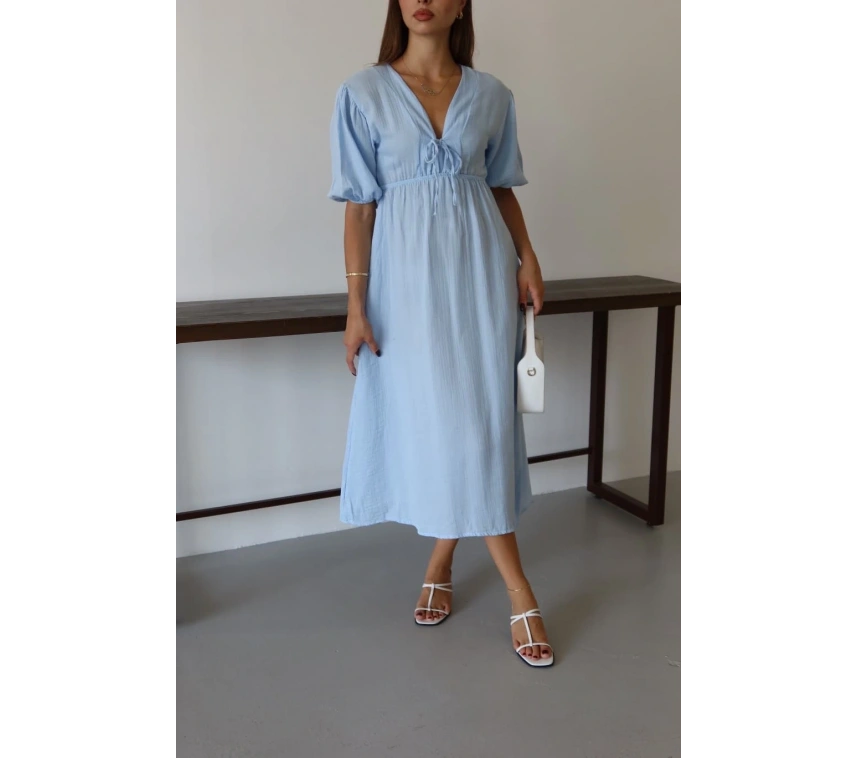 Kadın Giyim kategorisindeki elbise koleksiyonunda yer alan Kısa Kollu Müslin Elbise Mavi PT, gardırobunuzun vazgeçilmezi olmaya aday!