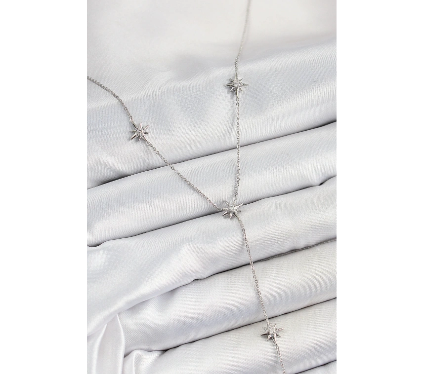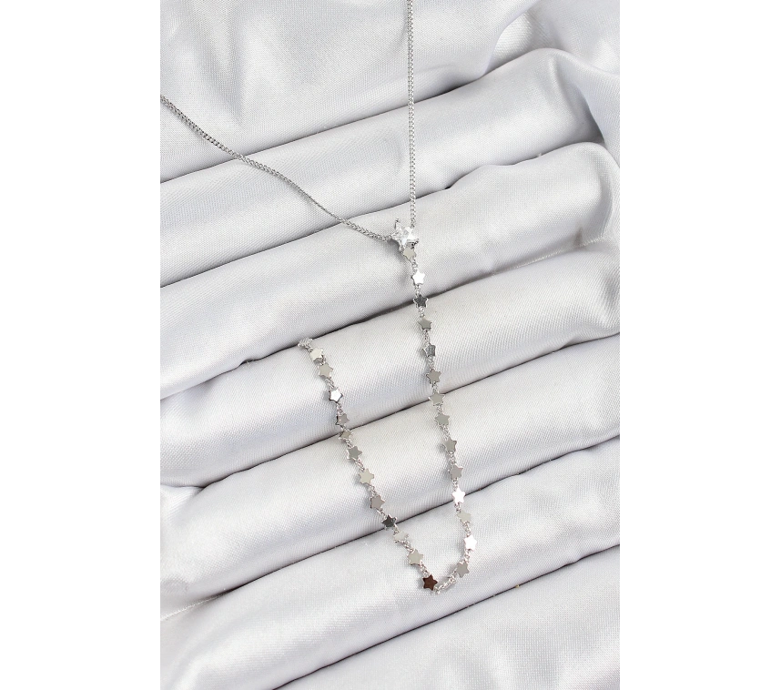Pirinç Gümüş Renk Yıldızlı Kadın Y Kolye