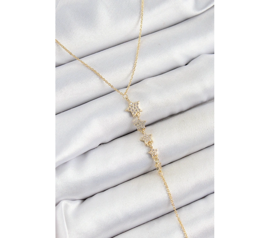 Pirinç Zirkon Taşlı Sıralı Yıldız Figürlü Y Model Gold Renk Kadın Kolye
