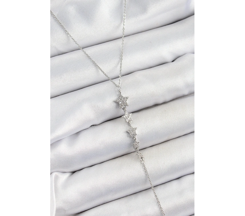 Pirinç Zirkon Taşlı Sıralı Yıldız Figürlü Y Model Gümüş Renk Kadın Kolye