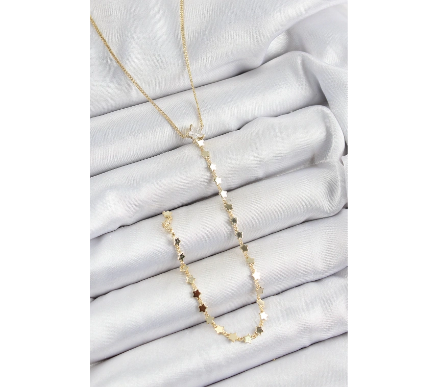 Pirinç Zirkon Taşlı Yıldız Figürlü Y Model Gold Renk Kadın Kolye
