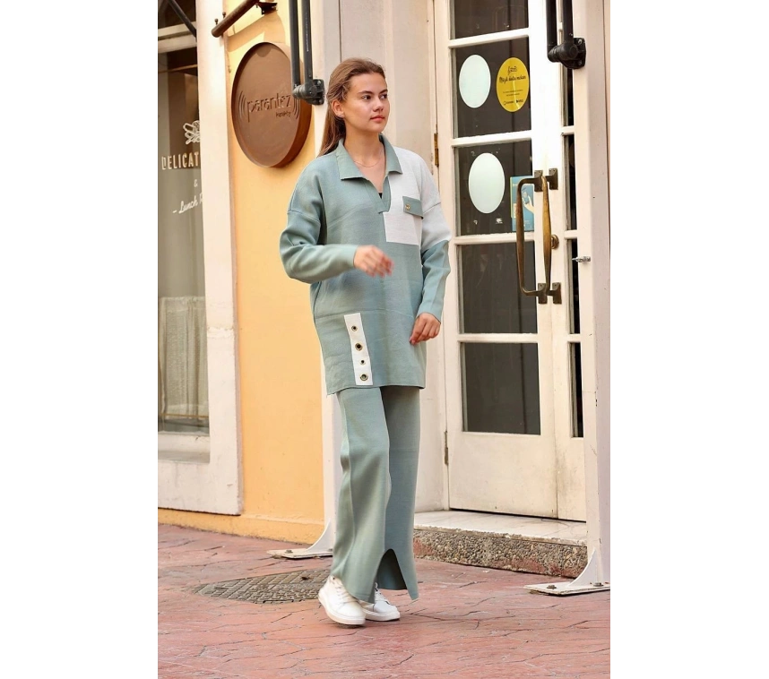 Mint rengiyle şıklığı ve rahatlığı bir arada sunan Kuş Gözü Triko Takım, gardırobunuzun favori parçası olmaya aday!