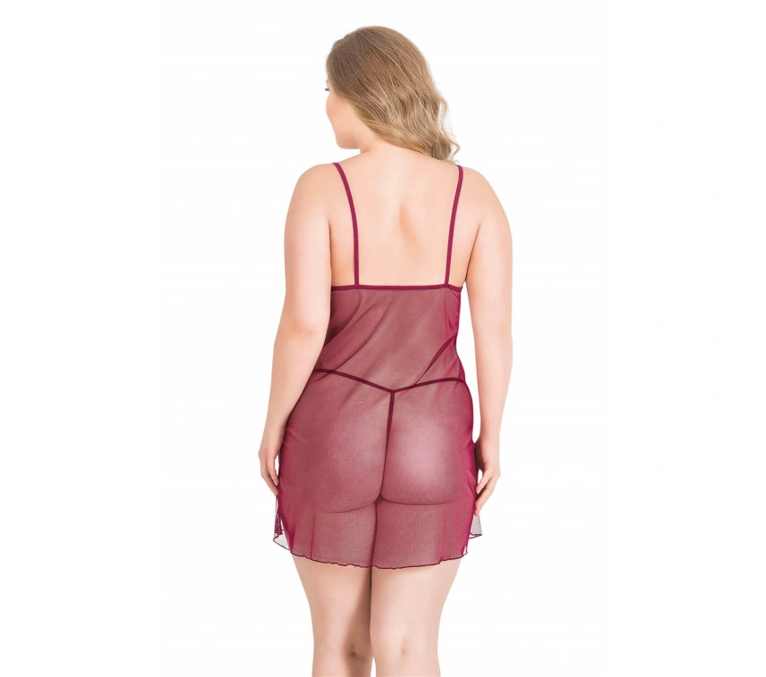 Lesca Büyük Beden Bordo Kısa Tül Gecelik 3022