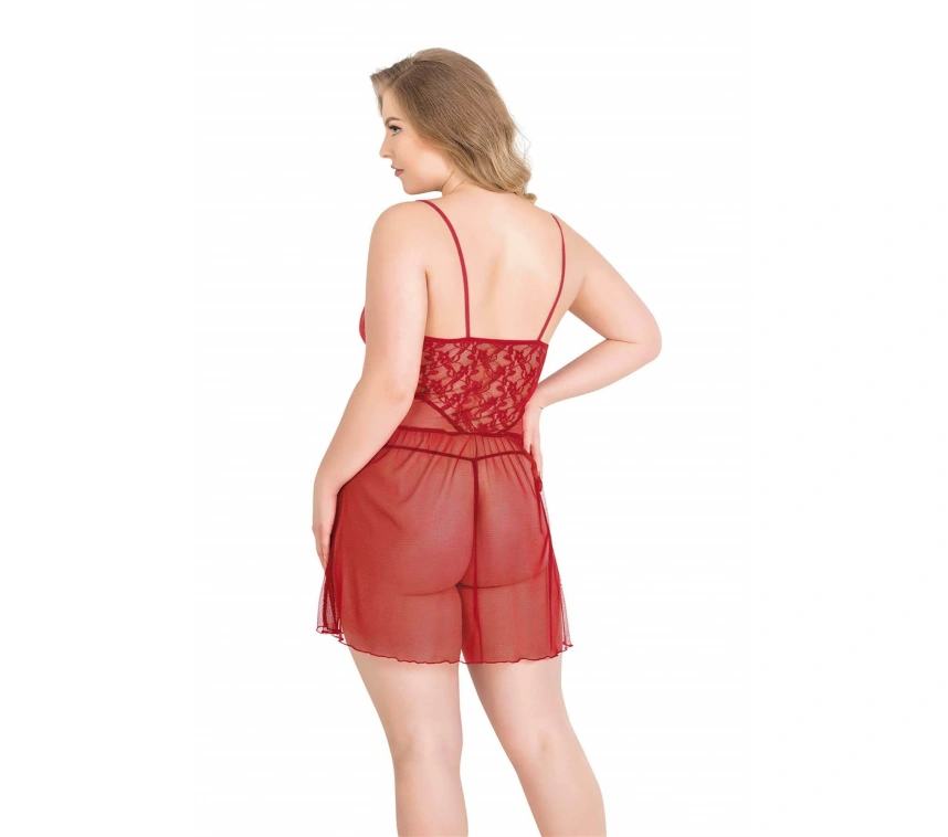 Lesca Büyük Beden Kırmızı Kısa Tül Gecelik 3033