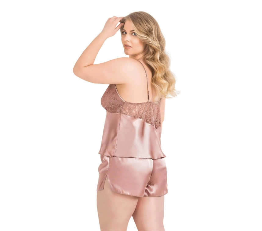 Lesca Büyük Beden Vizon Saten Babydoll Şort Takımı 1064