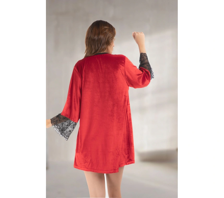 Lesca 1442 Kadife Kırmızı Sabahlık Takım Üstün Kalitede Kumaşlardan üretilmiştir. Özel Paketinde Gönderilmektedir. Kumaş türü : %80 Kadife %20 Dantel Ürün içeriğ i : Gecelik + Sabahlık S/M - (36-38) L - (40) XL - (42) Bedenlere olmaktadır.
