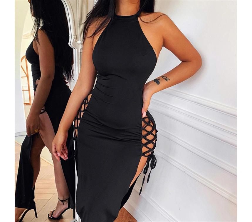 Esnek likralı dabany kumaştan üretilmiş derin yırtmaçlı elbise. Fantazi giyim ve gece giyim sevenler için klasik bir tercih. Vücudunuzu sarar ve müthiş bir görünüm elde edersiniz.