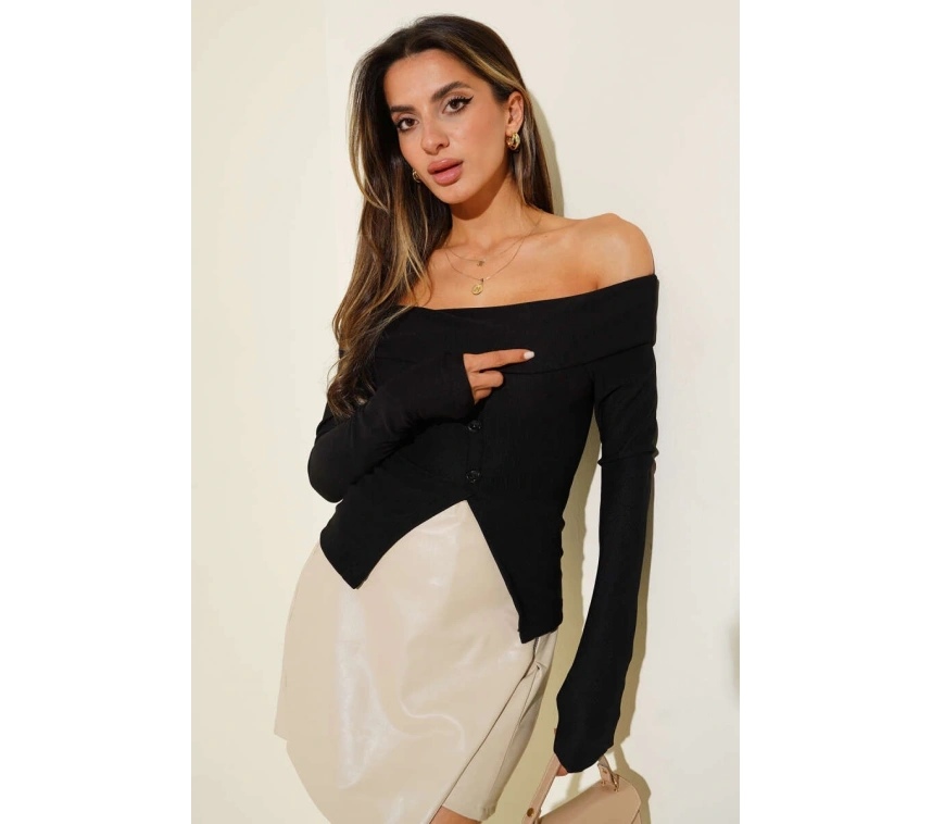 Madonna Yaka Düğmeli Bluz siyah t4329, şıklığı ve rahatlığı bir arada sunan bir kadın giyim ürünüdür.