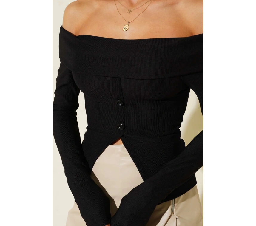 Madonna Yaka Düğmeli Bluz siyah t4329, hem günlük hayatta hem de özel günlerde tarzınızı yansıtmanızı sağlayacak şık ve kullanışlı bir seçenektir.
