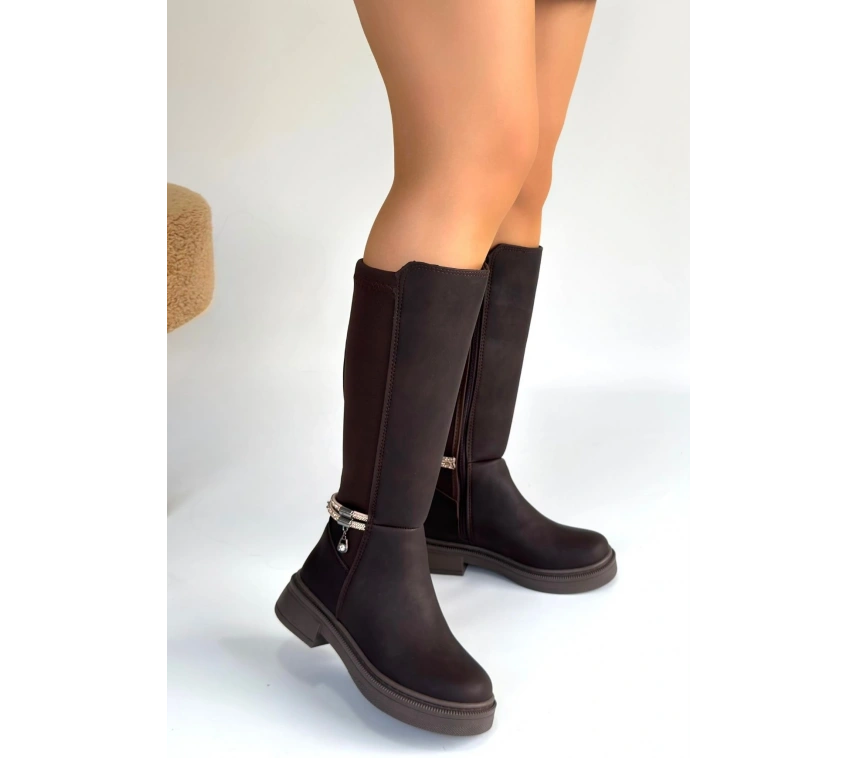 Detay: Topuklu Yandan Fermuarlı Diz Altı Çizme