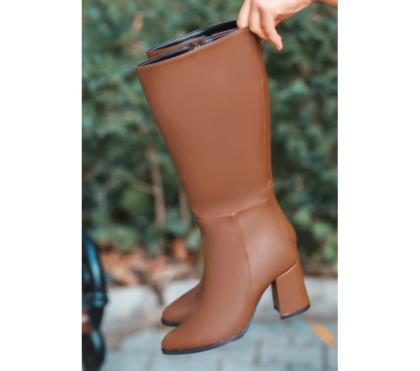 Detay : Topuklu Yandan Fermuarlı Diz Altı Çizme