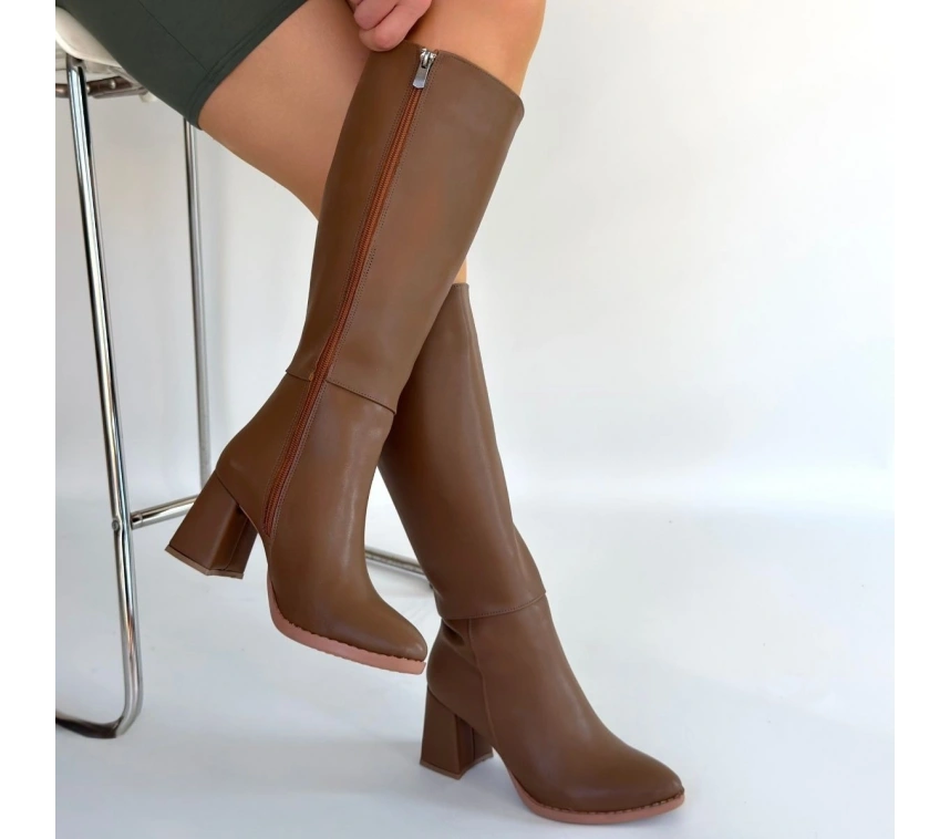 Detay : Topuklu Yandan Fermuarlı Diz Altı Çizme