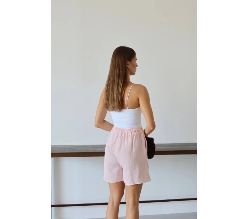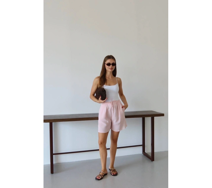 Bu şık pembe şort, rahatlığı ve şıklığı bir arada sunuyor. %100 pamuklu müslin kumaştan üretilmiştir ve sıcak havalarda serin kalmanızı sağlar. Bağcıklı detayı sayesinde belinize göre ayarlayabilir ve istediğiniz şekilde kullanabilirsiniz. Zarif tasarımı ile günlük hayatta ve tatilde rahatlıkla tercih edebilirsiniz.