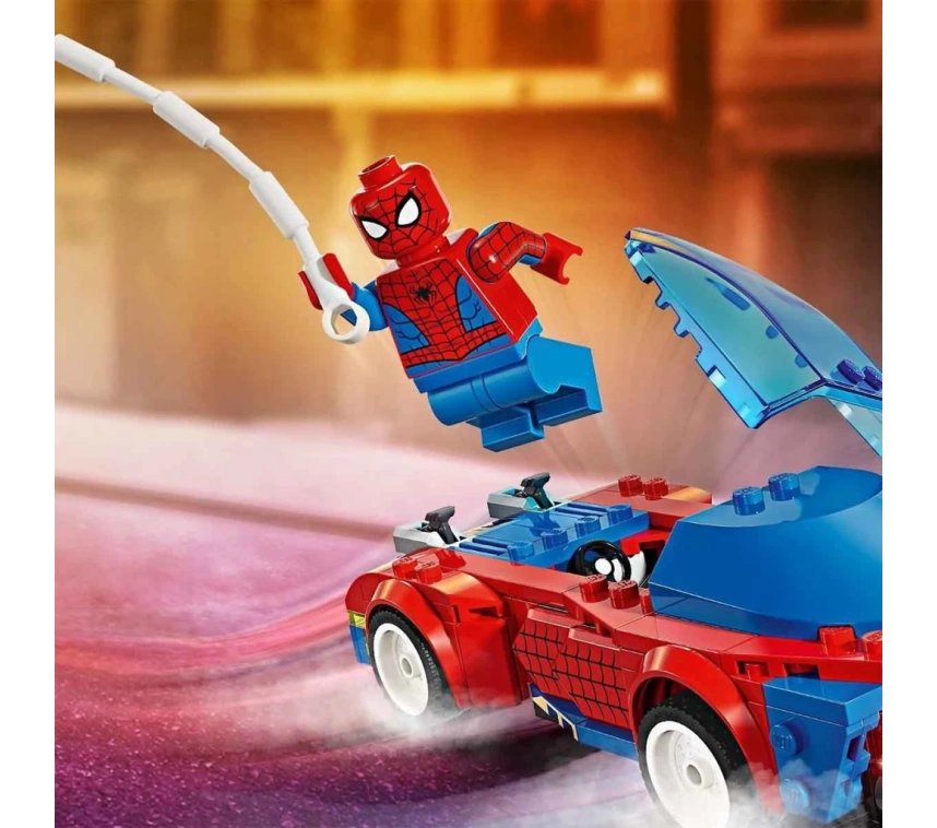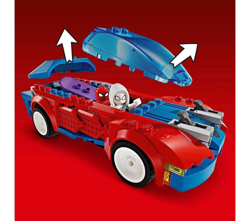 Spidey arabanın mermi atıcılarıyla ona karşılık verirken, Ghost-Spider kaykayını ve ağ silahlarını alıp peşlerine düşüyor.