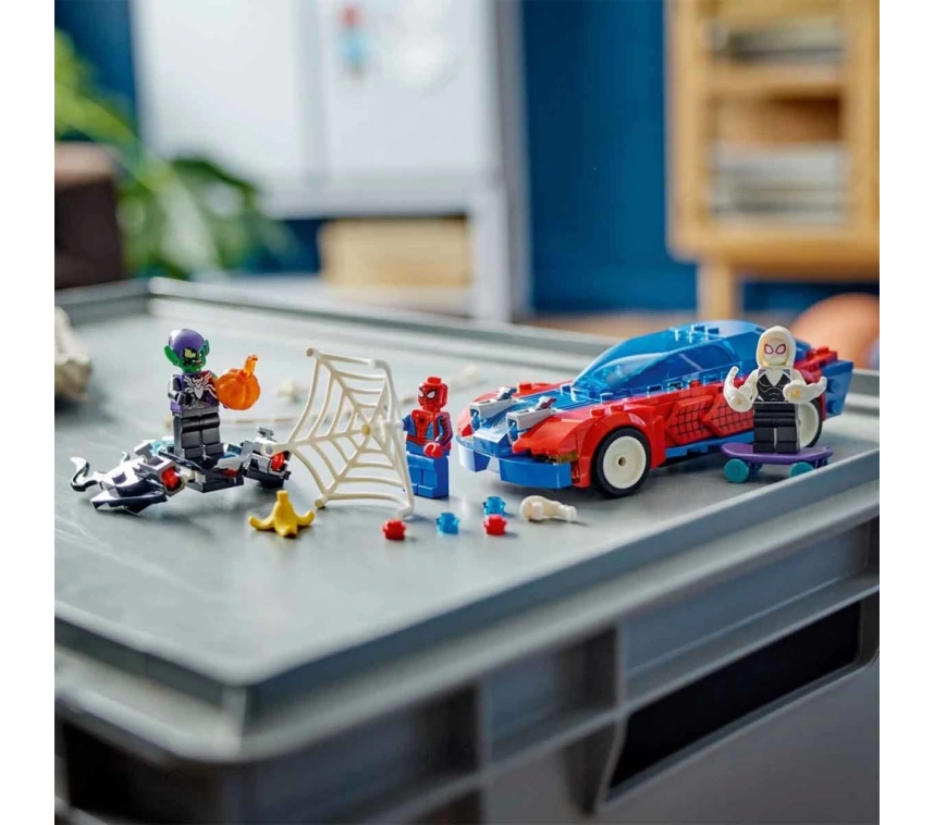 Örümcek Adam ve Ghost-Spider, Spidey’nin Yarış Arabasında gezerken Venom Green Goblin planörüyle süzülerek onlara saldırıyor.