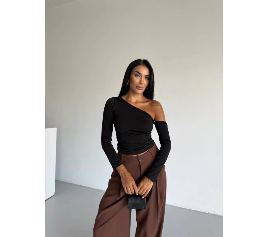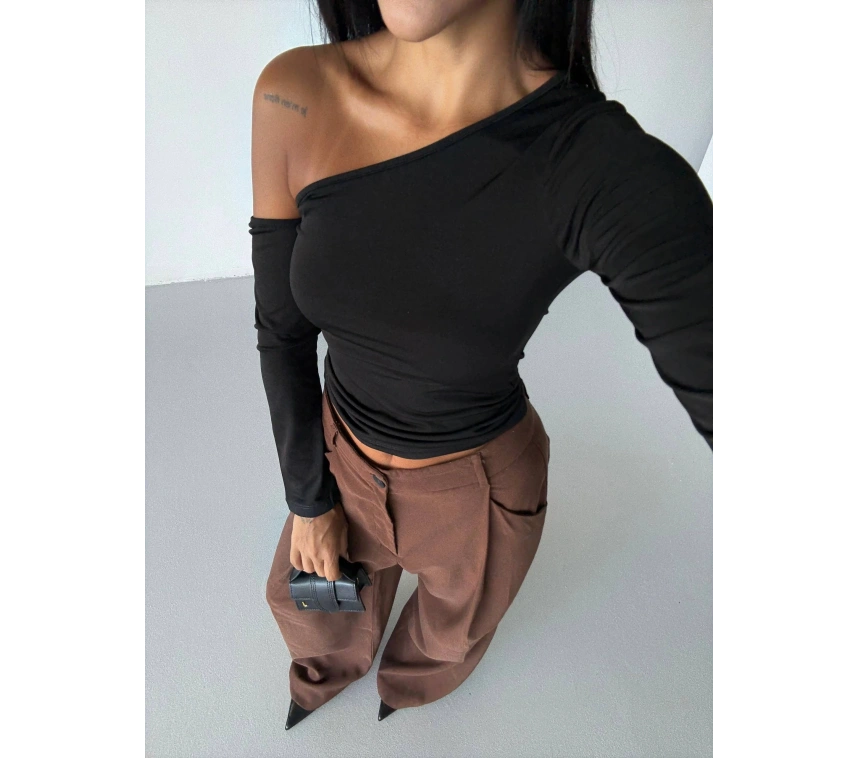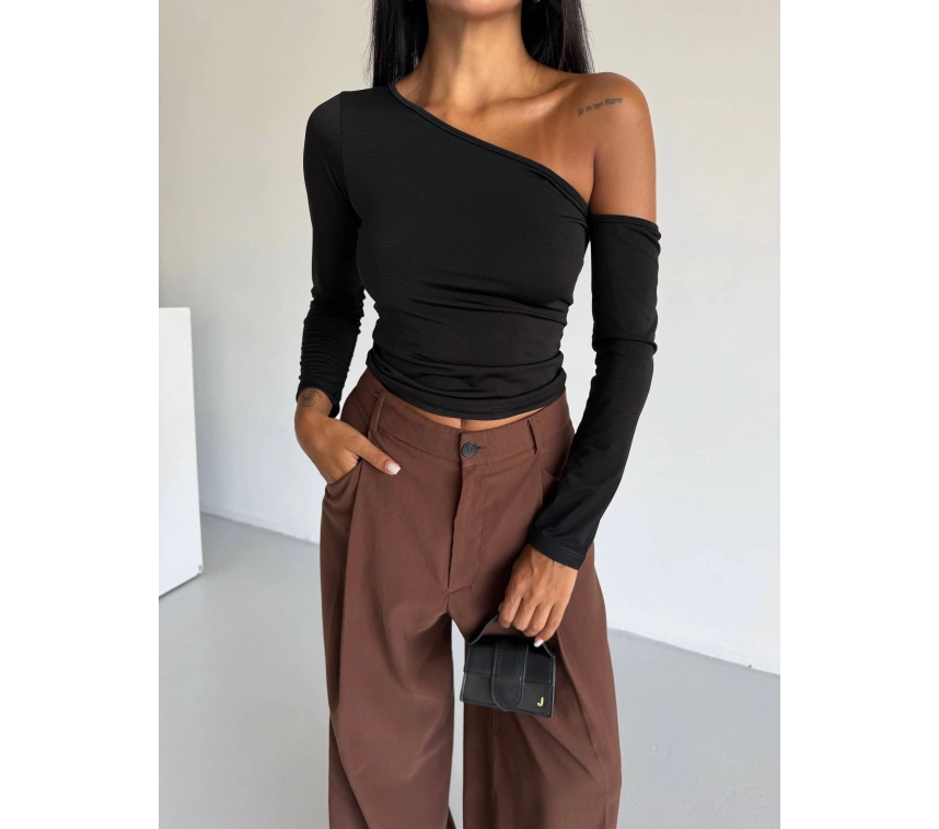 Omuz detaylı kollu bluz siyah f2336, şıklık ve rahatlığı bir arada sunar.