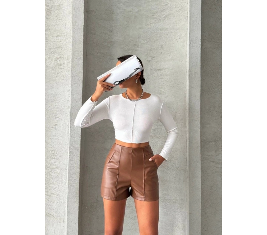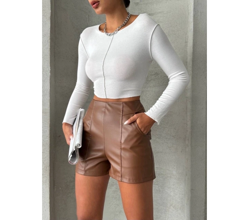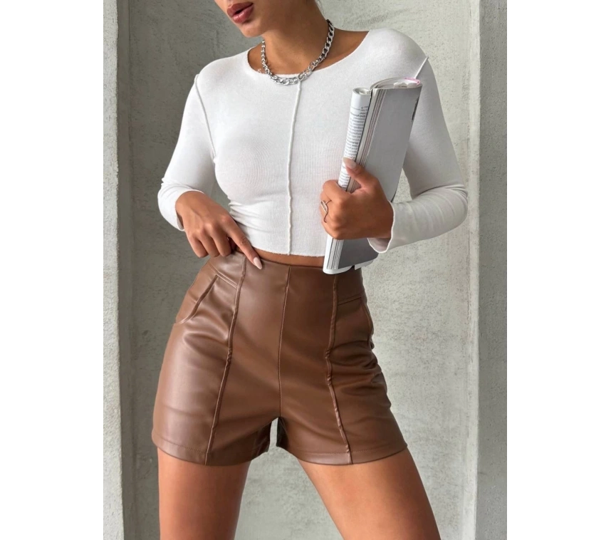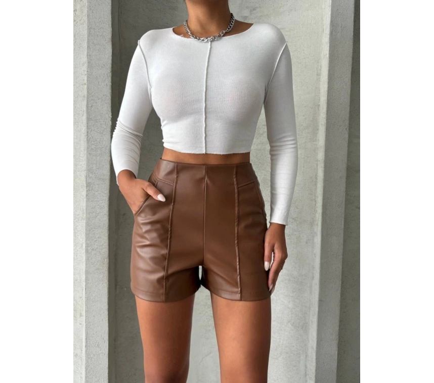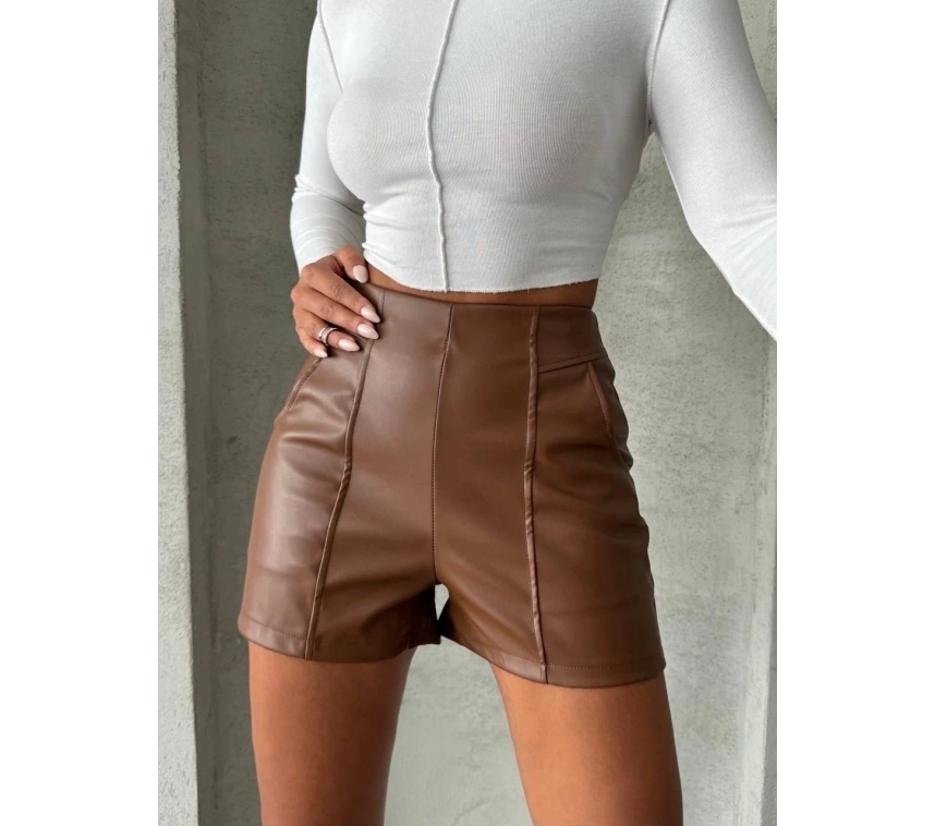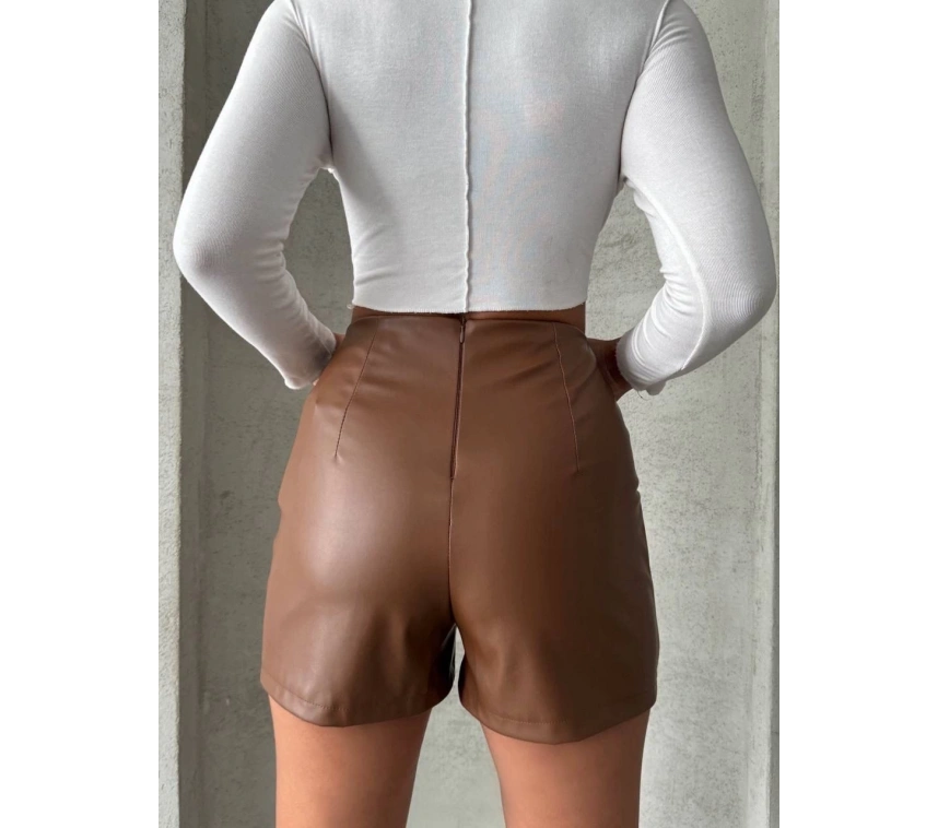 Bu parçalı cepli deri şort ile tarzınızı konuşturun, kendinizi özgür hissedin!
