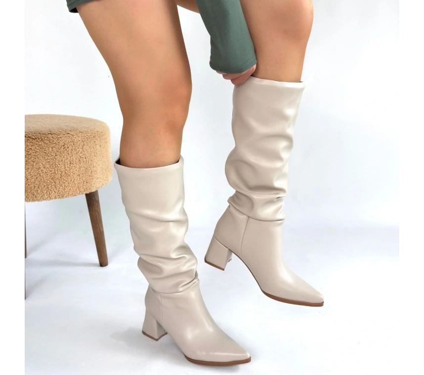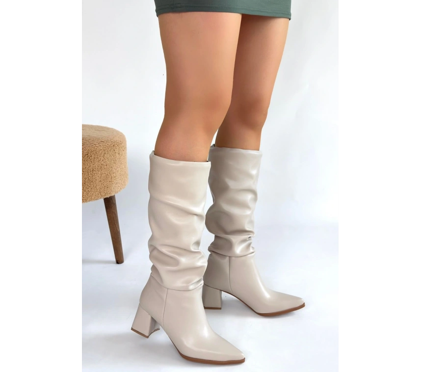 Detay: Topuklu Diz Altı Körüklü Çizme