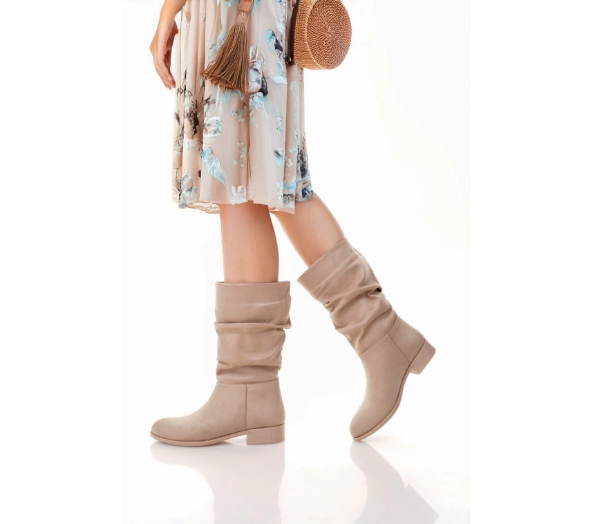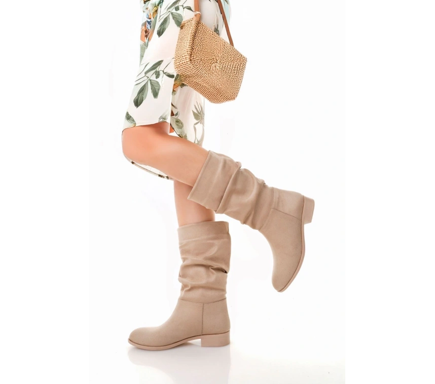 Detay: Topuklu Diz Altı Körüklü Çizme