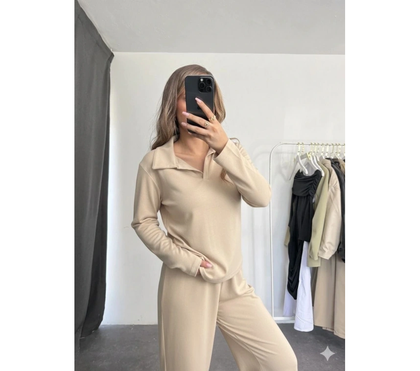 Bej rengiyle şıklığı ve rahatlığı bir arada sunan Polo Yaka Alt Üst Kollu Modal Takım, gardırobunuzun vazgeçilmezi olmaya aday!