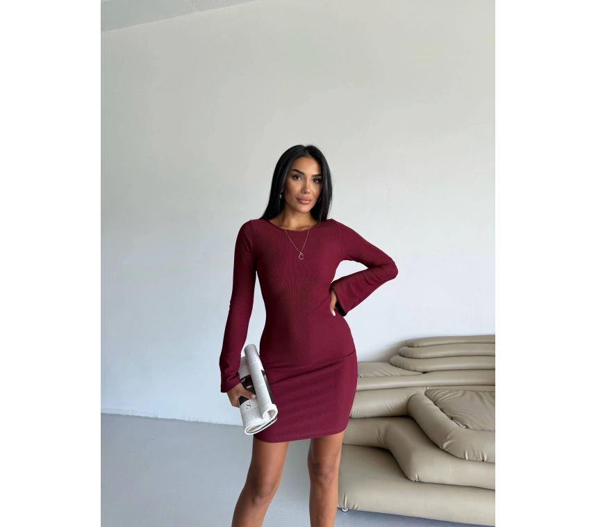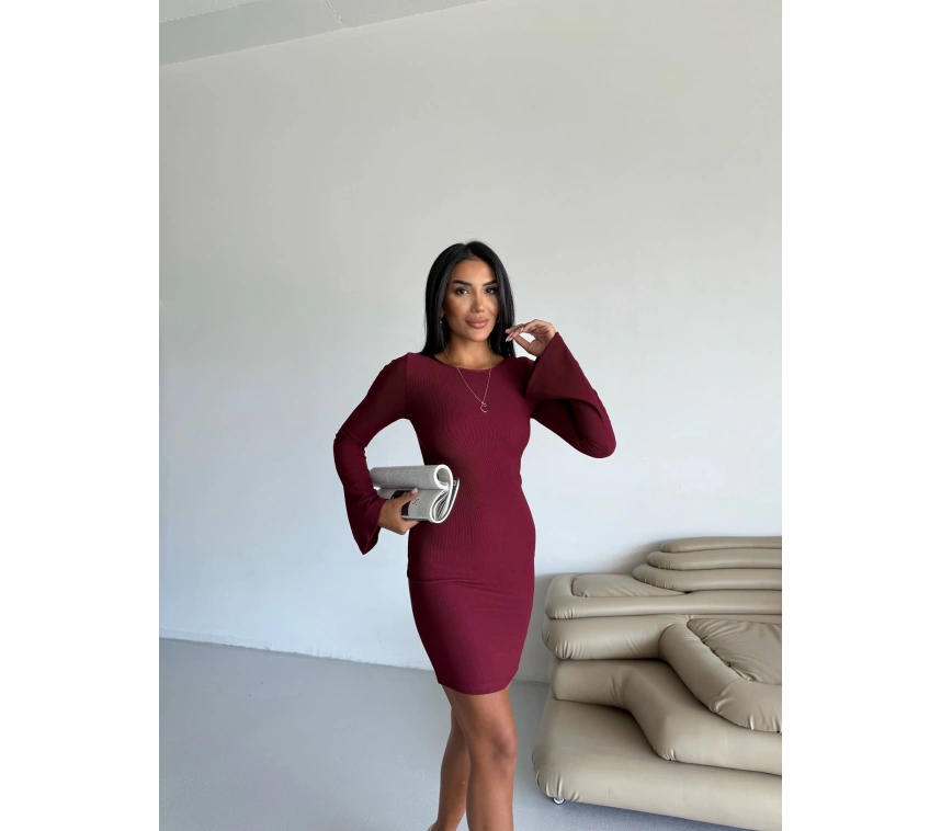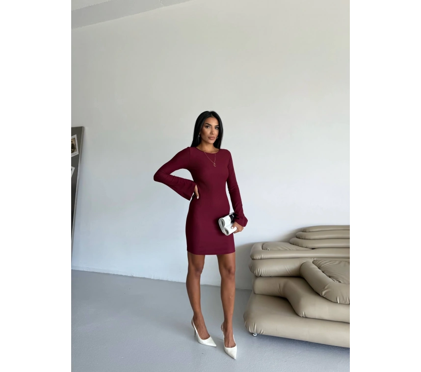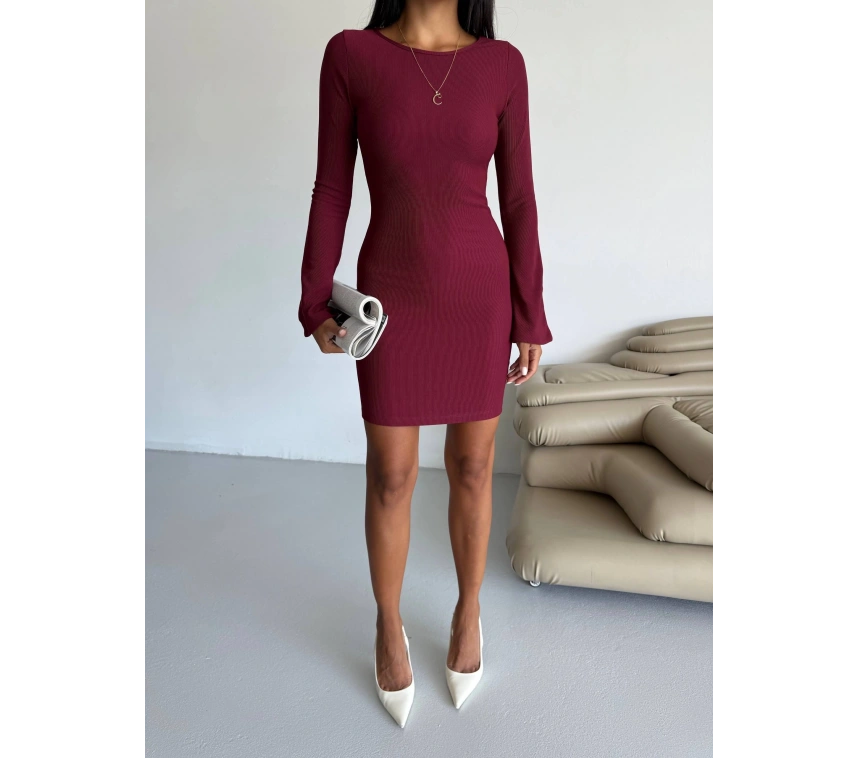 Prenses Kol Esnek Kumaş Elbise Bordo F2334, şıklığı ve konforu bir arada sunar.