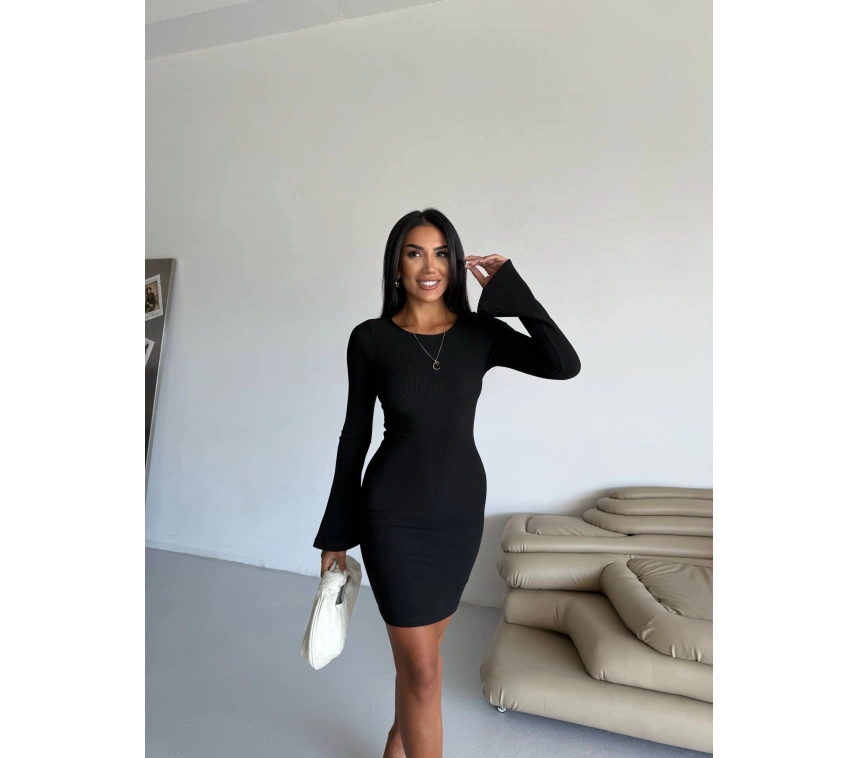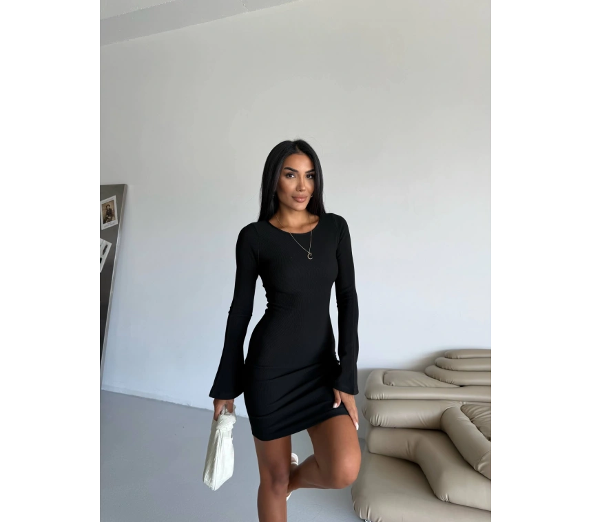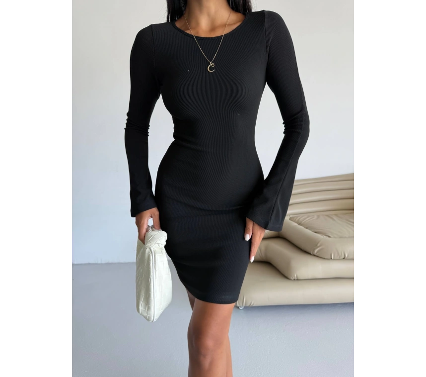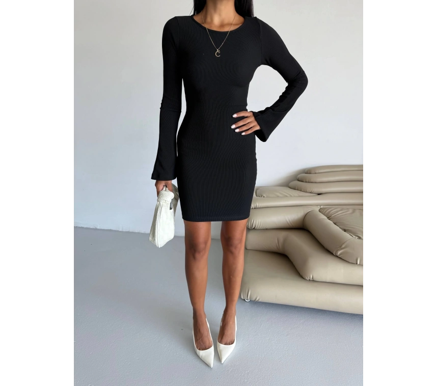 Prenses kol detaylı esnek kumaş elbise siyah f2334, şıklığı ve rahatlığı bir arada sunar.