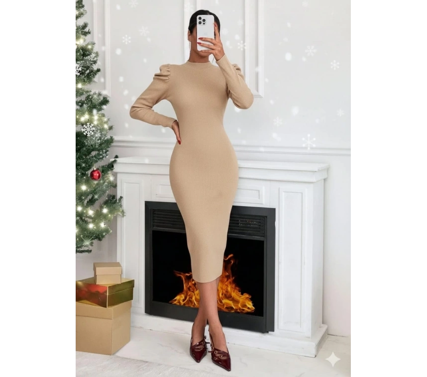 Prenses kol detaylı kaşkorse elbise bej rengiyle şıklığınızı ön plana çıkaracak bir parça. Yüksek bel kesimiyle vücut hatlarınıza uyum sağlayan bu elbise, feminen bir görünüm sunar. Günlük kullanıma uygun olan bu elbiseyi özel günlerde de tercih edebilirsiniz.