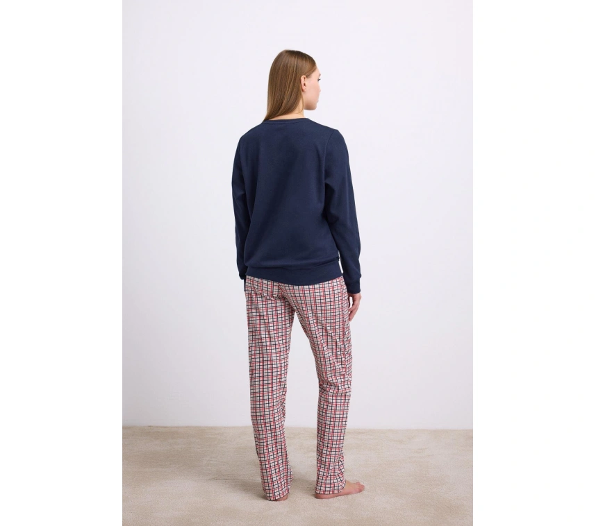 Uzun kollu sweatshirt, minimal ve modern tasarımıyla sıcak bir konfor sunarken; ekose desenli pantolon ise klasik ve şık görünümüyle takımın tarzını tamamlar. Esnek bel yapısı, rahat kesimi ve hafif dokusu sayesinde hem uyku zamanlarında hem de evde keyifli vakit geçirdiğiniz anlarda ideal bir kullanım sunar.