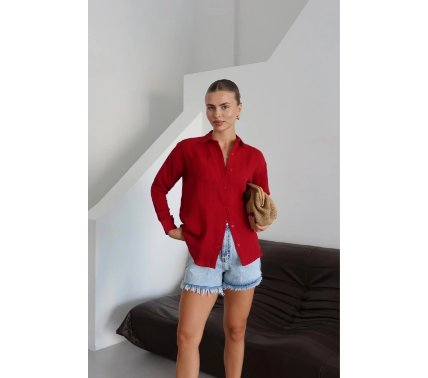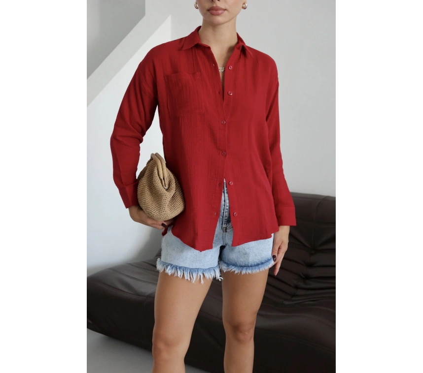 Şıklığı ve rahatlığı bir arada sunan Tek Cep Müslin Gömlek ile tarzınızı ön plana çıkarın. Bordo rengi ile dikkat çeken gömlek, şık detaylarıyla göz kamaştırıyor.