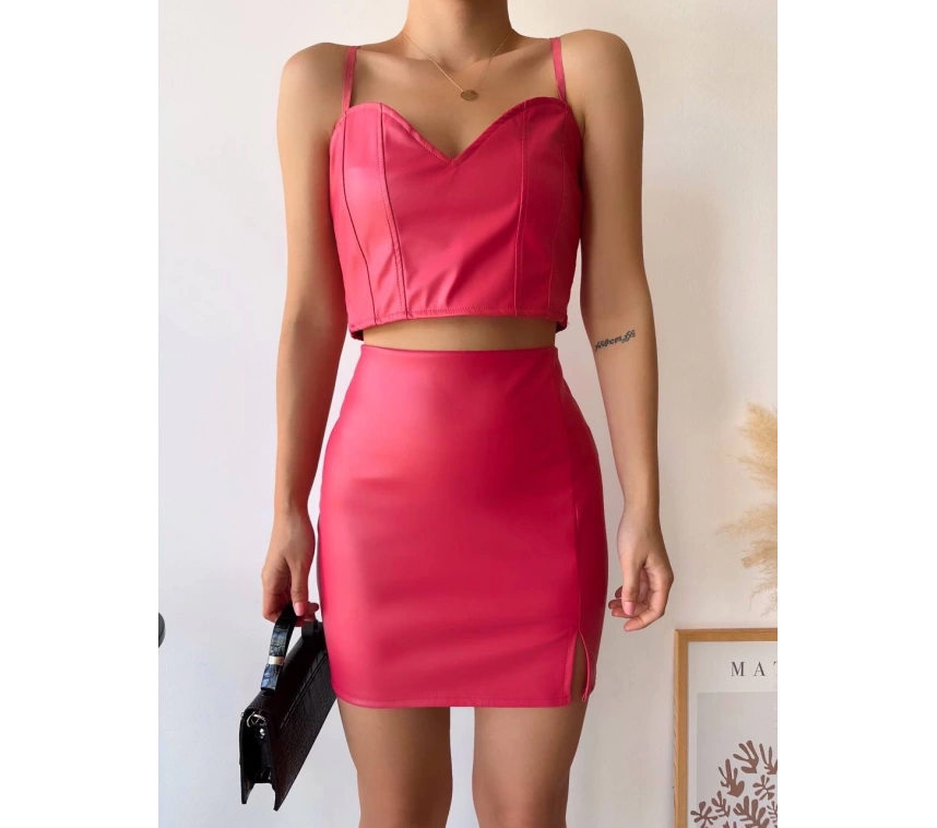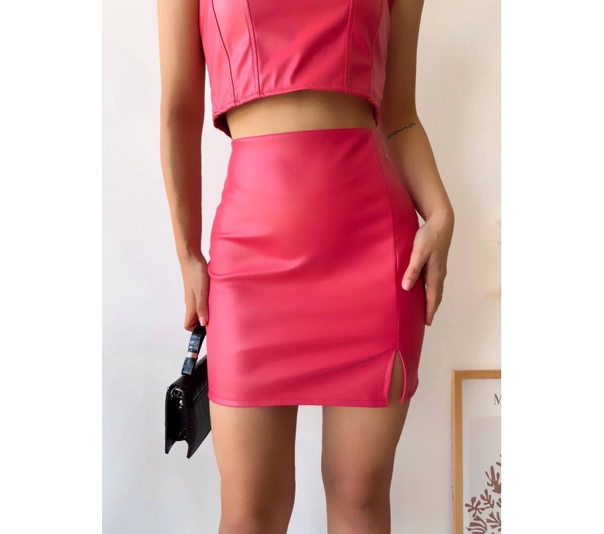 Şıklığı ve zarafeti bir arada sunan Tek Yırtmaçlı Arkadan Fermuarlı Deri Etek Fuşya S24475, gardırobunuzun vazgeçilmez parçalarından biri olmaya aday!