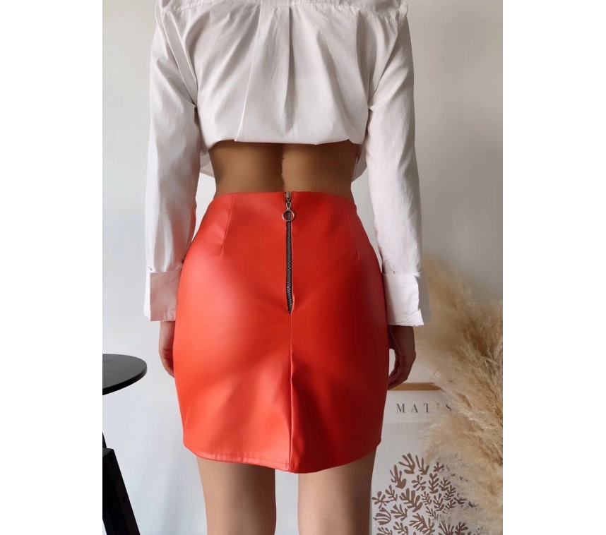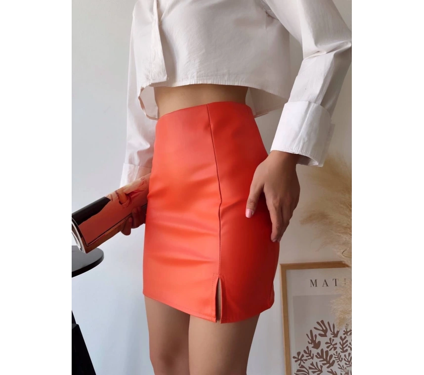 Yeni sezonun trend parçalarından olan turuncu deri etek, gardırobunuza enerjik bir dokunuş yapacak!