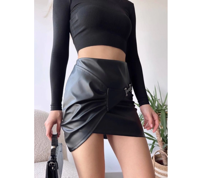 Yeni sezonun trend parçalarından Tokalı Deri Etek Siyah S240097, şık ve zarif görünümüyle öne çıkıyor.