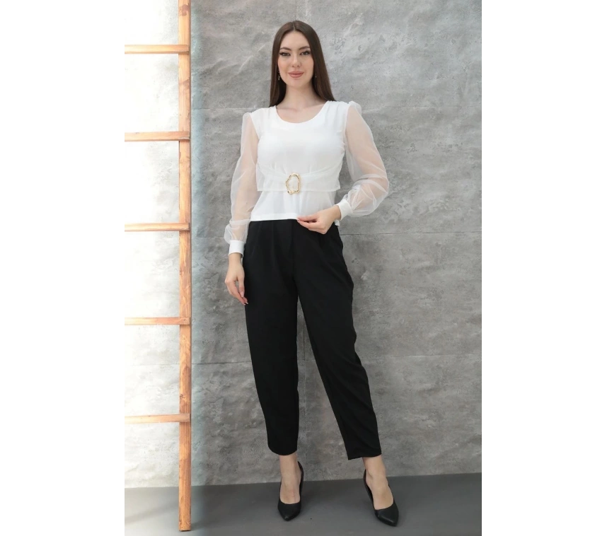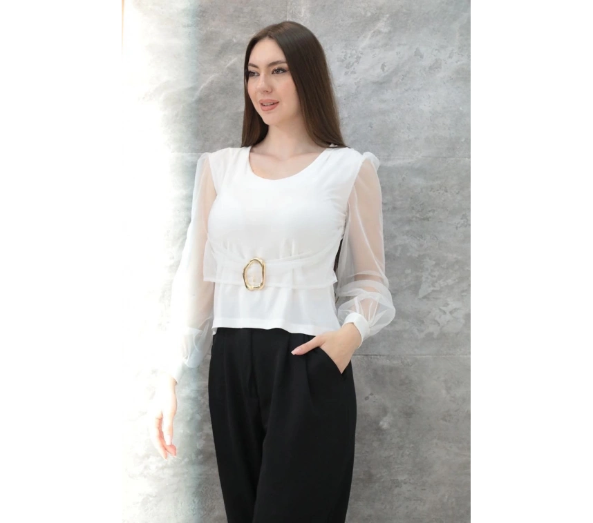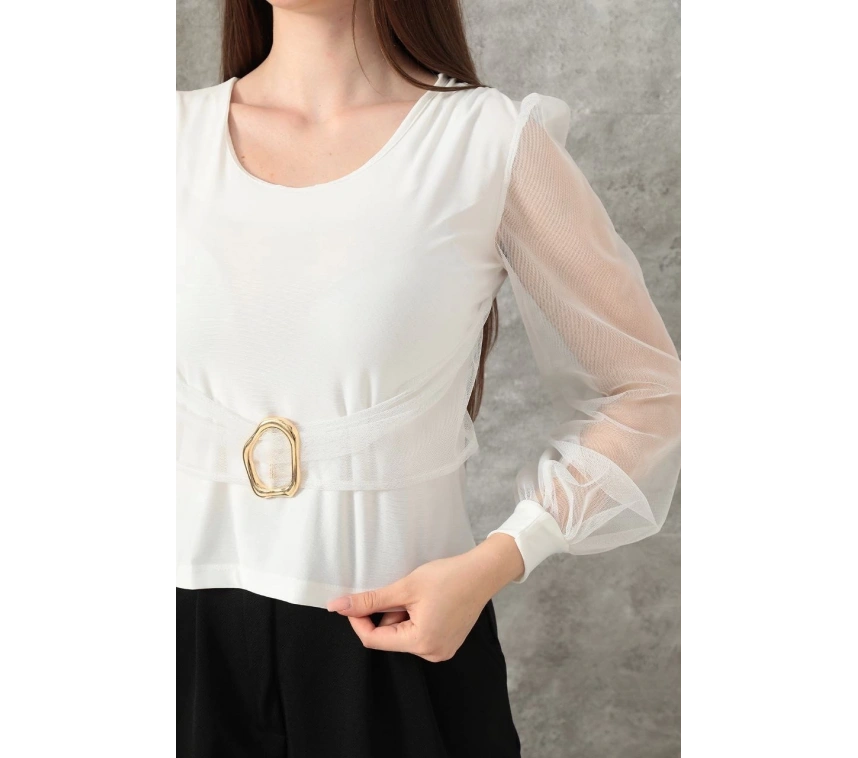 Tokalı tül kollu bluz beyaz T4071 ile şıklığına şıklık katacak, güvenilir alışverişin keyfini çıkaracaksınız.