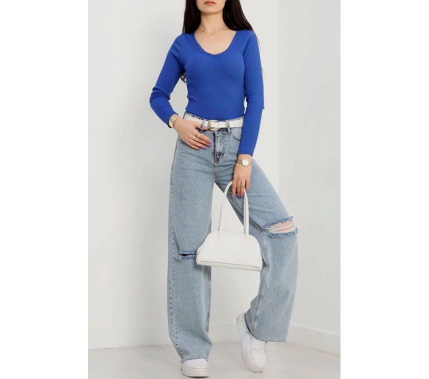 - V yaka kaşkorse detayı ile şık bir görünüm sunar.