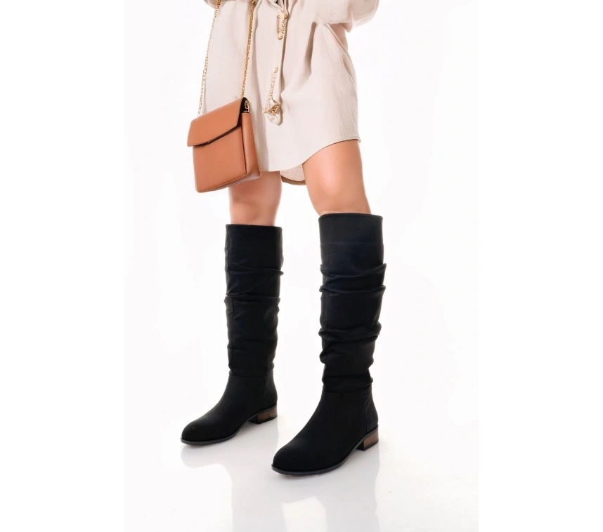 Detay: Topuklu Diz Altı Körüklü Çizme