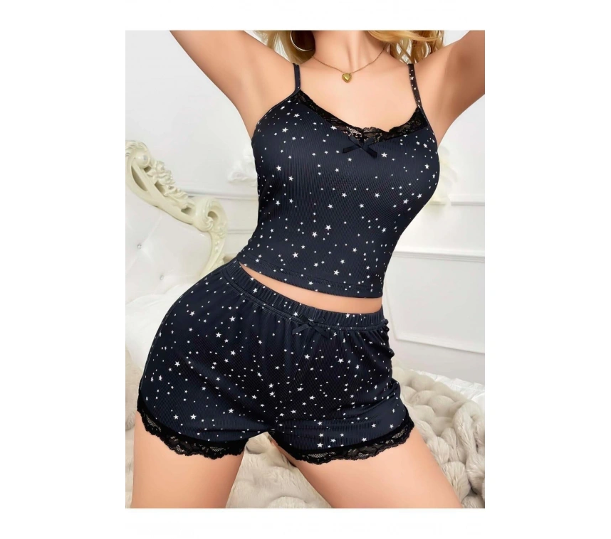 ' Yıldız Desenli Askılı Şortlu Pijama Takımı', rahatlığı ve şıklığı bir arada sunuyor. Yumuşak kumaşı ve şık tasarımıyla gece giyimine farklı bir hava katıyor. Yıldız desenli üstü ve şortuyla dikkat çeken bu takım, keyifli gecelerin vazgeçilmezi olmaya aday. kalitesiyle üretilen bu pijama takımı, hem şık görünümü hem de rahat kesimiyle kullanıcılarına konforlu bir deneyim sunuyor. Uyku vaktinde tarzından ödün vermek istemeyenler için ideal bir seçenek olan bu takımı inceleyebilir ve hemen satın alabilirsiniz.